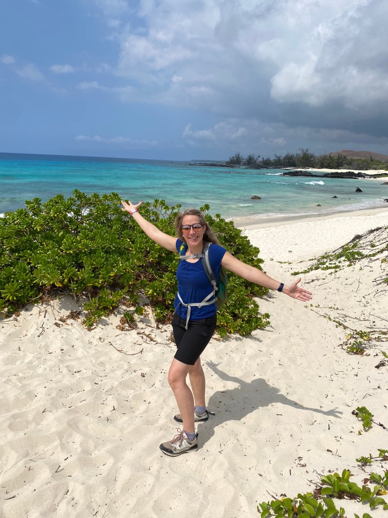 The next afternoon, John came and got me at my hotel. John lives 90 minutes from my resort. How kind of him to be willing to come see me! It was great catching up with him. I remember getting along with him when we were teenagers in Australia with the exception of one time that I stepped on some coral that he was collecting, but as we chatted, I was able to recognize what a thoughtful and kind human he is. He took me on a hike over lava fields to beautiful nearly-empty white sand beaches. We saw a sea turtle out swimming, dolphins, and goats. We swam, we ate fresh lychee, and we chatted. It was wonderful!