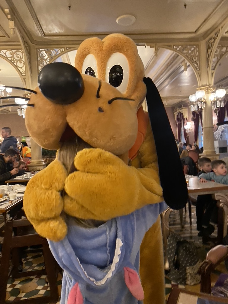 Went to a character breakfast. I went back and forth on this, and then finally decided to splurge by paying for an expensive character breakfast. In total, I believe that I paid 90 Euro for the experience (50 for myself, 40 for my kid). I knew the food would 100% not be worth 90 Euros for breakfast (When in France, it’s super easy to get a delicious pastry for under 2 Euros, there was just no way the food at an all-you-can-eat buffet would be 86 euros more delicious that a delicious pain au chocolat from a local boulangerie). But I HOPED we’d get enough attention from the characters to be worth the money. I was a bit worried about it; L isn’t one to push for attention, so I worried other kids would take all the characters’ attention. I needn’t have worried. Each character carefully made it from table to to table, making sure to take pictures, sign autographs, and play with each kid. It was wonderfully magical. We met Daisy, Donald, Goofy, Pluto, Tigger, and Eeyore. L had already met all of the characters except for Tigger and Eeyore, and I STILL felt the magical experience was worth the cost. While I did very much appreciate the Mickey breakfast cake, which I ate approximately 6 slices of, the food was 100% not worth the price. But for the character time? WORTH IT!